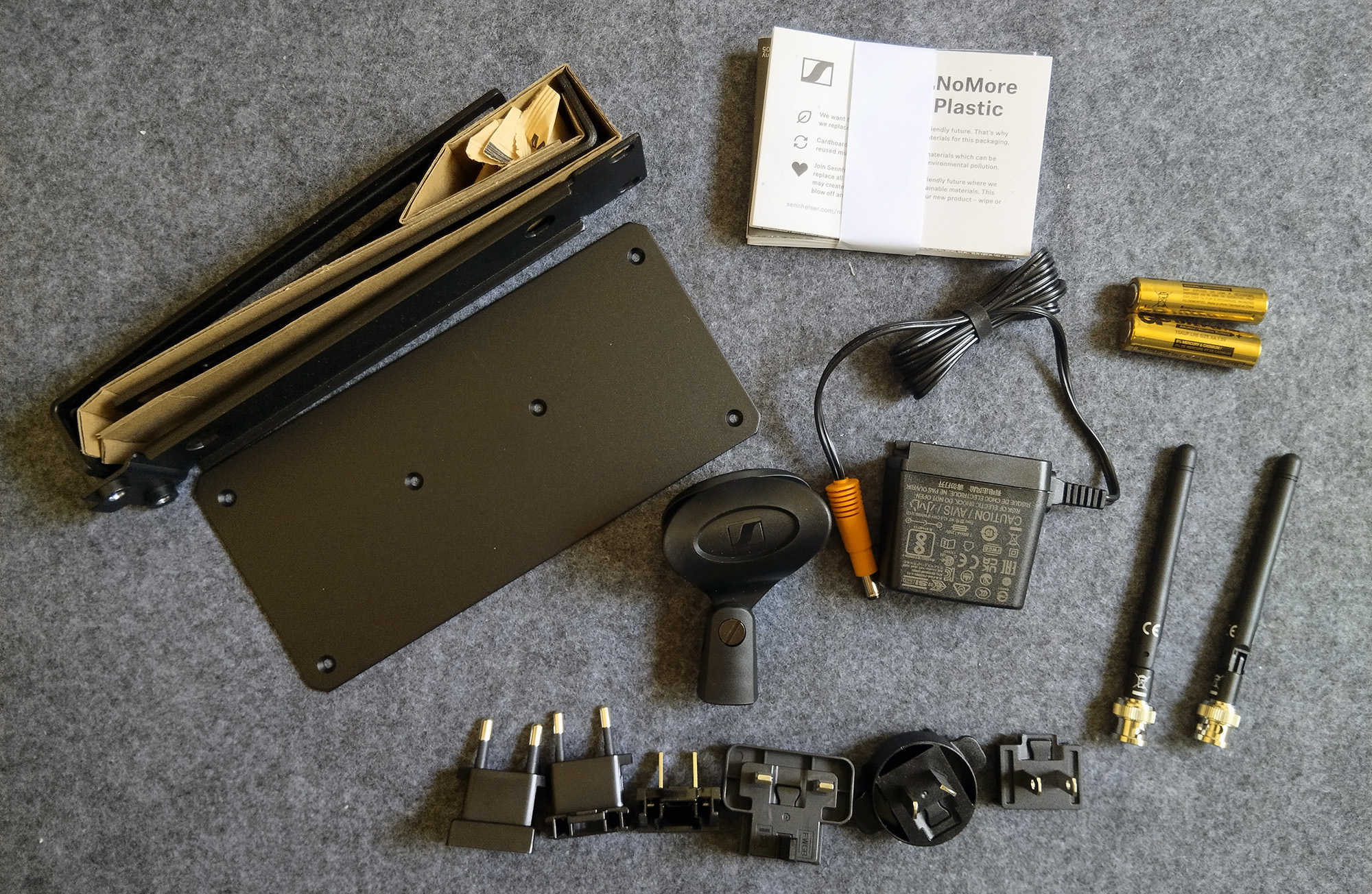 配件采用国际化适配,包含电源适配器、六国电源插头(中美/英/澳标等)、RF天线、机架安装套件及通用麦克夹具、说明文档、电池等,开箱即用。