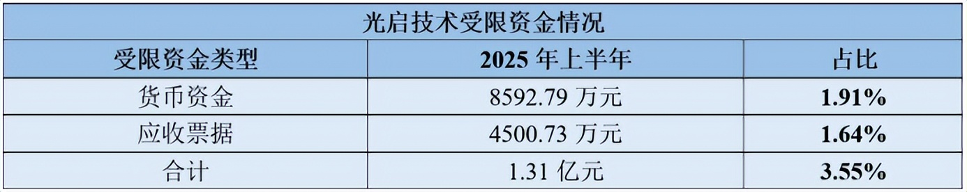 从2025年上半年的数据就能窥见一斑,光启技术上半年77亿的流动资产中,受限资金仅有1.31亿元;其中44.99亿的货币资金中受限资金只有8000万元,流动资金的质量是很高的。