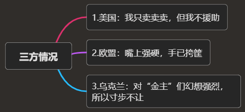 说是这么说,但事实就是对乌的援助已经大幅下降,现在说这些都谈不上是给乌克兰壮胆了,更像是在给自己保面子。所以目前这三家的态度更像是这个样子: