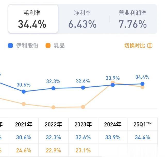 伊利25年第一季度相对24年收入增加1.32%,归母净利润下降17.71%,主要是由于去年一季度卖掉了子公司股权,有26.474亿的投资收益,25年一季度扣非净利润同比增长24.19%,相对于23年、22年、21年净利润均有大幅增长。