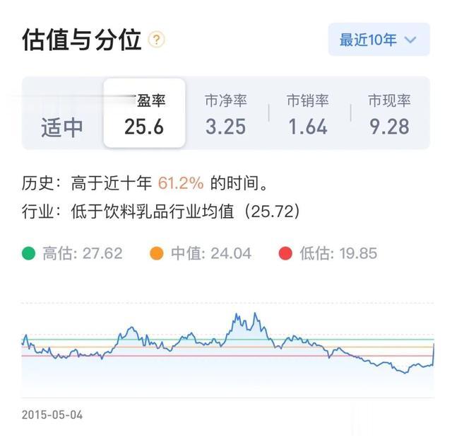 当前伊利PE25倍左右,随着业绩的好转,有望迎来双击时刻。