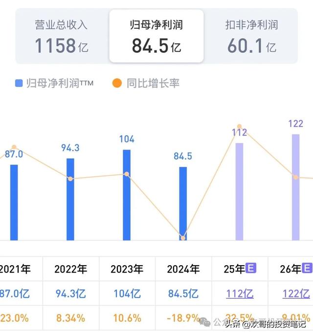 从估值来看,管理层计划2025年实现营业收入1190亿元,同比增长约2.8%,实现利润总额126亿,扣除所得税费用后约为109亿的净利润。