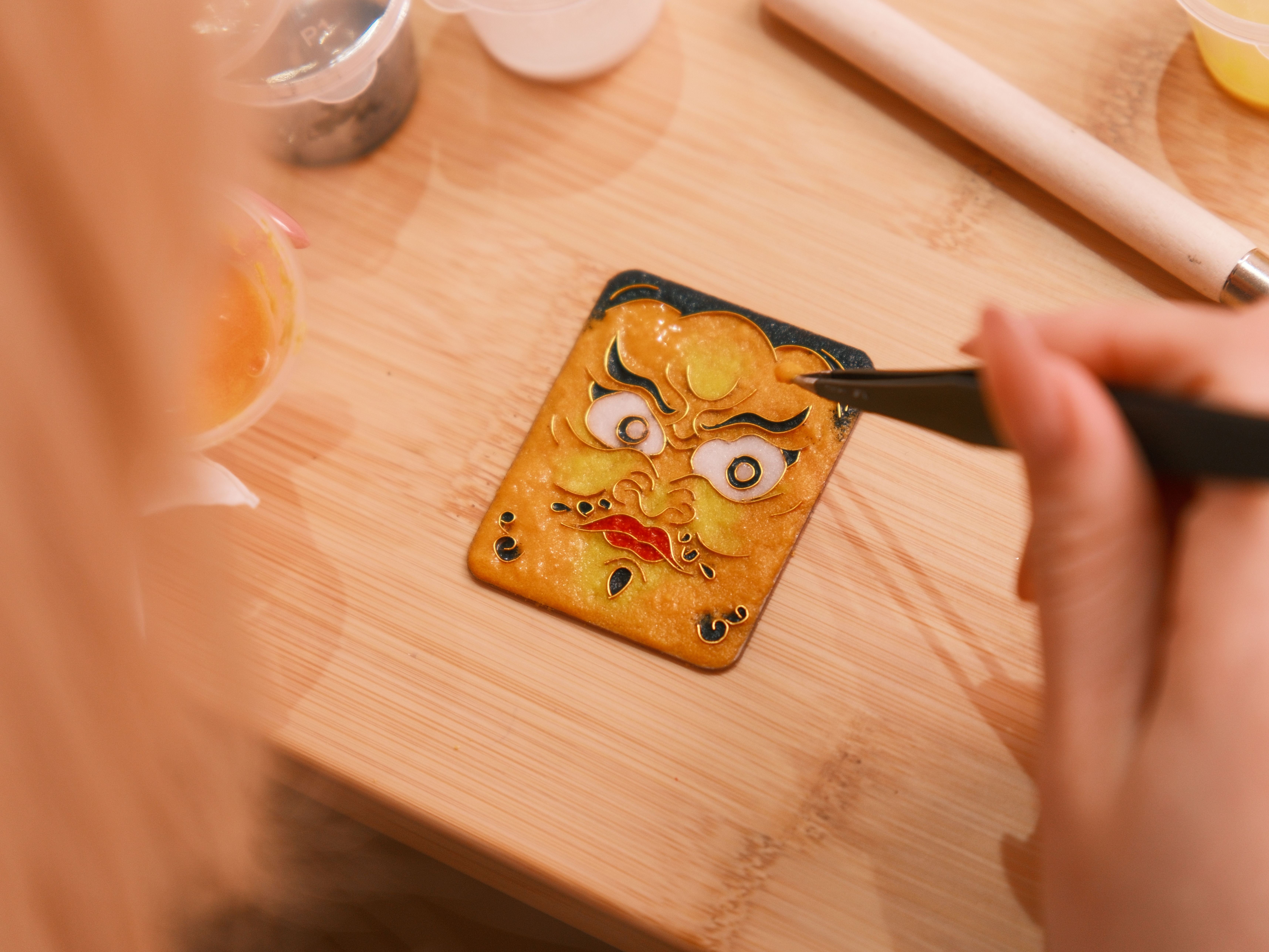 老师全程耐心指导,从金丝弯折的技巧到颜料晕染的层次,每一个细节都悉心讲解。掐丝的过程,如同紫微斗数所倡导的修心之道,需屏息凝神、放下浮躁,在反复调整中沉淀心境;颜料晕染的过程,恰似心性由浮躁归于沉静的蜕变,每一笔都藏着专注与热爱。