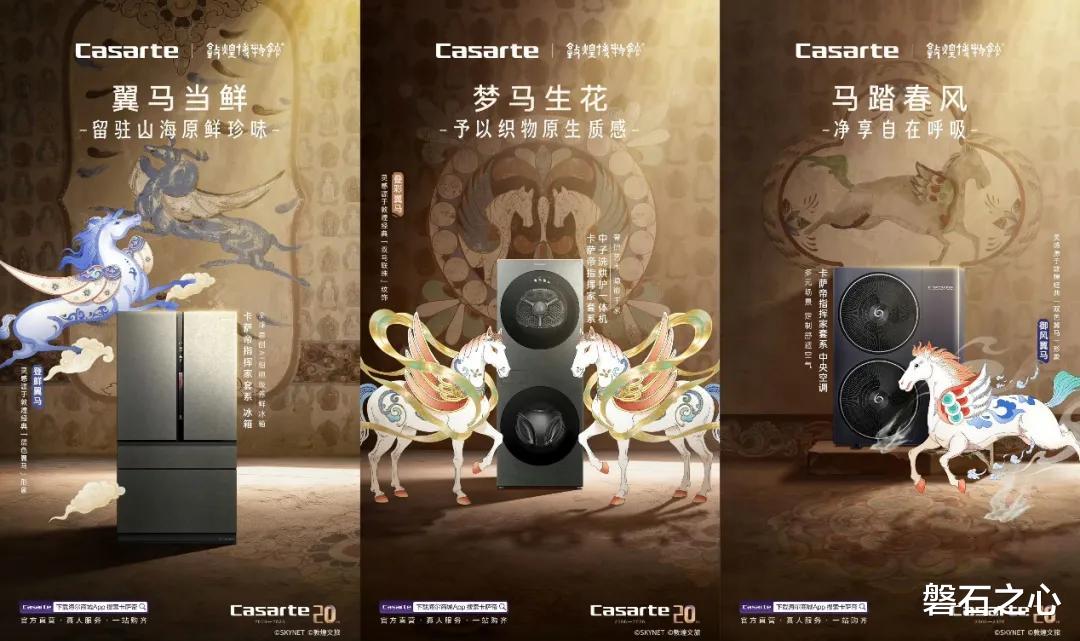 卡萨帝以领先的AI原创科技为用户打造全新生活方式的同时,也体现了其20年来持续创新、持续引领、持续超越的精神。与敦煌天马壁画的对话,卡萨帝指挥家套系的每一款产品都与特定的马形象产生了奇妙的共鸣,构建出一套高端智慧生活图景。