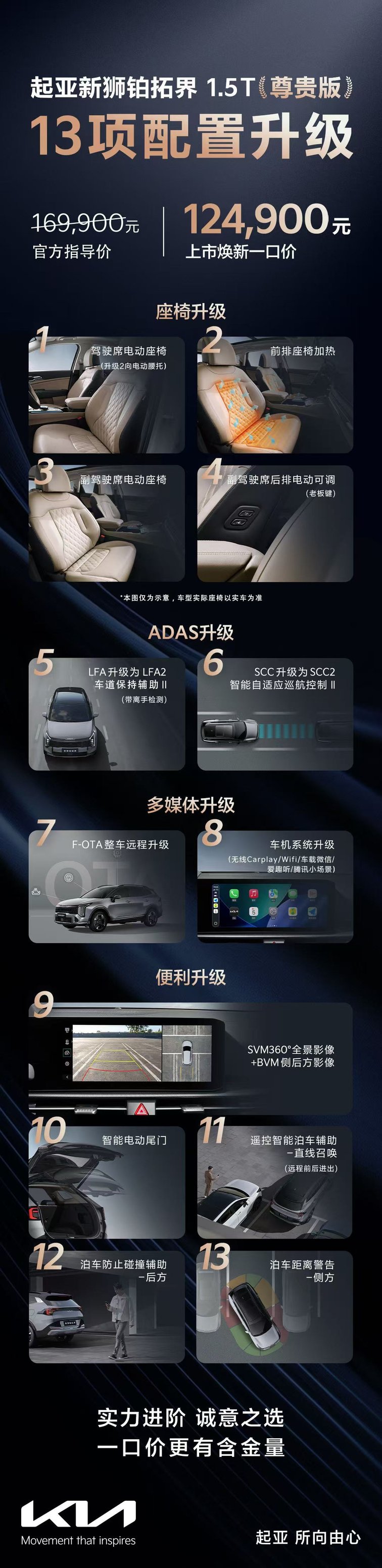 从33年的全球经典到如今的焕新进阶,起亚新狮铂拓界始终坚守全球统一品质,并深度适配中国本土化需求,以硬核的产品实力与满满的诚意,为中国家庭用户带来全维进阶的高品质出行体验,势必将成为10万级合资SUV市场的不二之选。