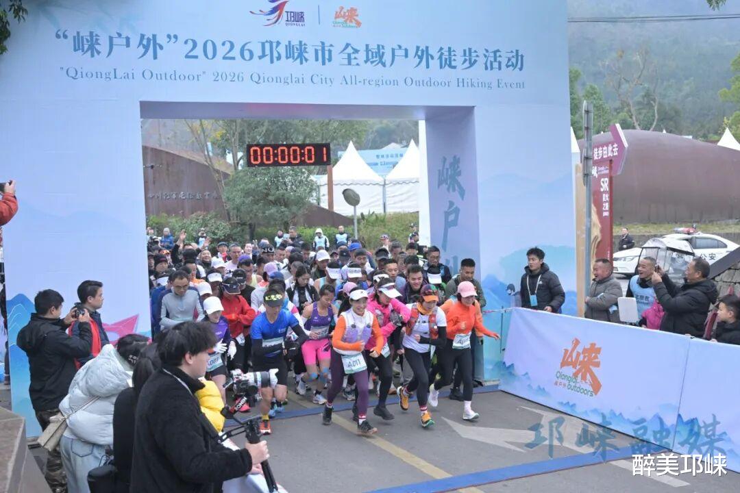 发布仪式后,备受期待的“崃户外”2026邛崃市全域户外徒步活动随即展开。活动分设竞速组(14公里)与亲子组(8公里),路线贯穿天台山低海拔户外运动带,融合自然景观与项目体验。