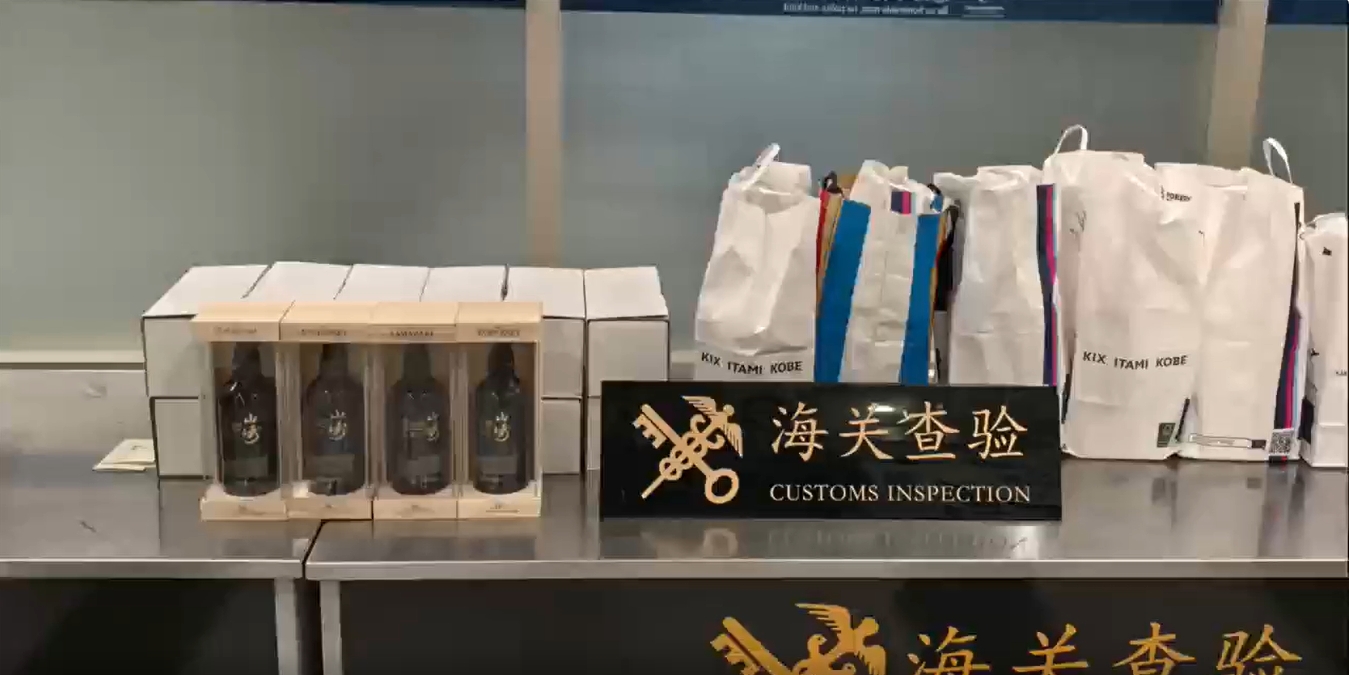现场关员通过进一步调查,查获一名导游通过旅行团成员分散携带洋酒共12瓶。