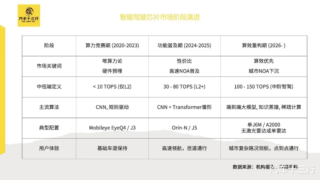 一旦智驾技术范式发生跃迁,低带宽芯片会再次面临硬件性能限制,现在的成功绝不意味着低算力方案构建了真正的技术壁垒。