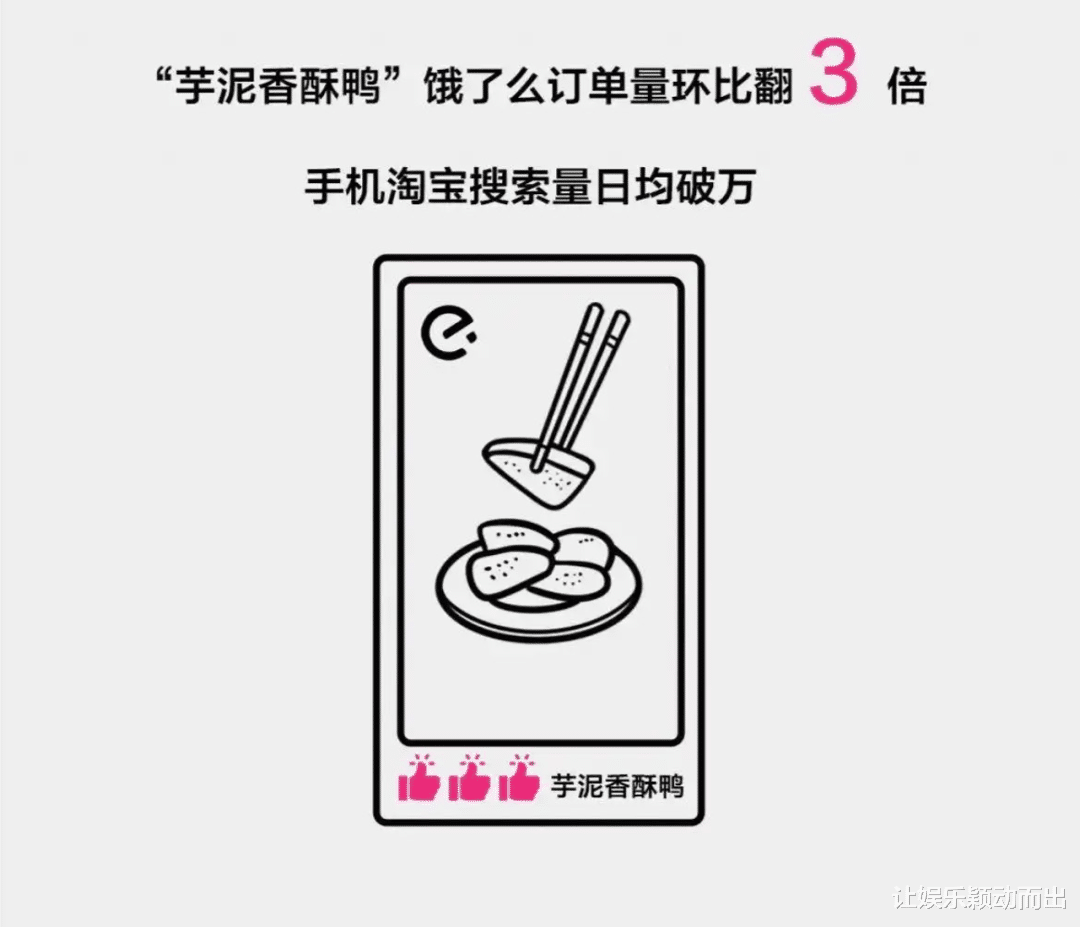 《偷偷藏不住》播出后,一道“芋泥香酥鸭” 饿了么订单量环比翻3倍,手机淘宝搜索量日均破万,大家都想尝尝剧中男女主喜欢的口味。
