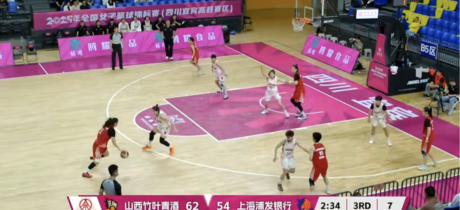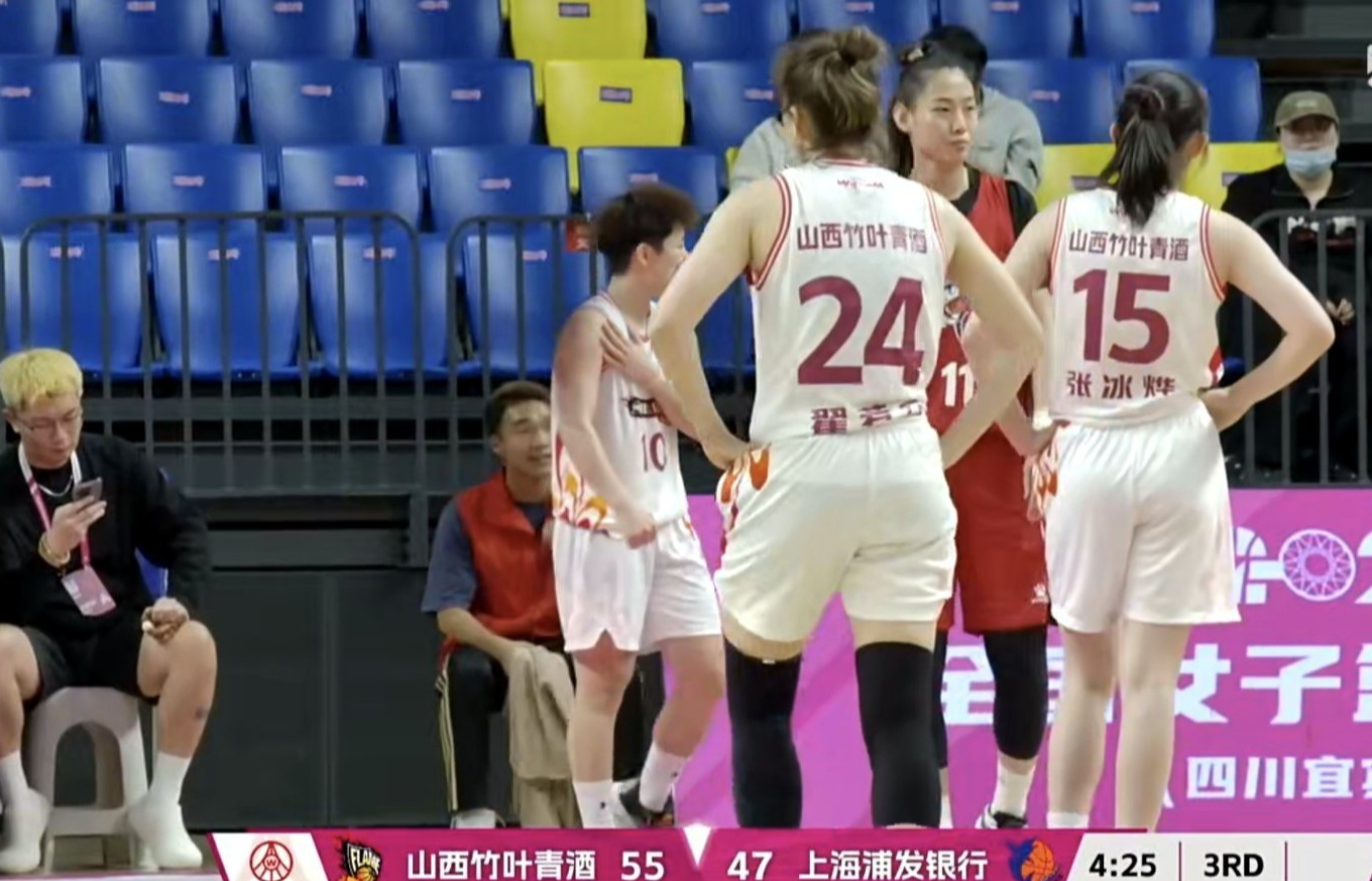 王樱霓强突篮下打进,上海五犯已满,宋柯昕罚篮中1。宋柯昕抢断,张懿博三分不中,上海快攻不中,方敏突破造犯规罚篮全中,57比47。