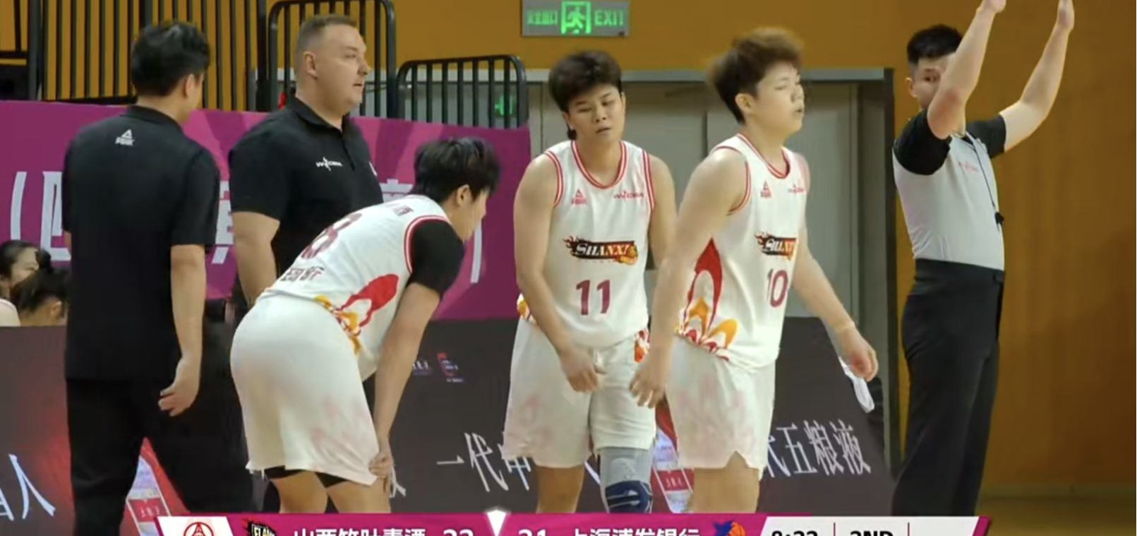 第三节,双方加大防守强度,前一分钟均没有得分。王樱霓反击得到2分后,又准备反击侵犯张懿,张懿弧顶三分线一米远再进三分,刘帅罚篮中1,伍湘琳三分命中,张懿突破打进,王樱霓两罚中1,张含突破造犯规罚篮中1。张冰烨换下犯规困扰的张含。王樱霓篮下打进,宋柯昕篮下接底线发球,投篮造犯规罚篮全中。山西是54比45上海。