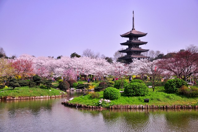 ✅ 开放时间:白天8:30-17:30,夜樱18:30-22:00(必冲!9000余组灯光点亮樱海,五重塔光影秀绝美)
