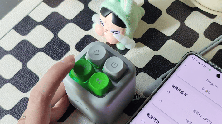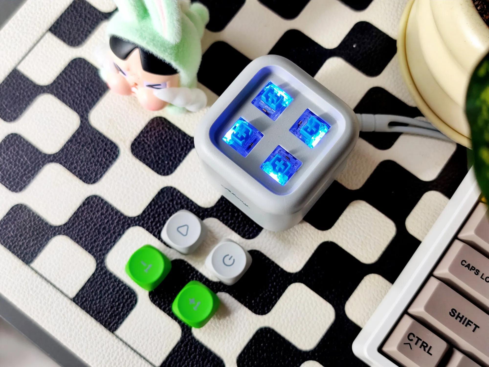 按键设计特别有意思,采用的是机械键盘键轴+键帽的组合,指尖按压下去有清脆的响声和明显的段落感,在声音与手感上都有愉悦的反馈,每次我都想多按两下,那感觉太解压了!
