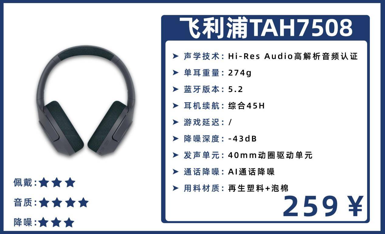 2、飞 利 浦TAH7508头戴式耳机