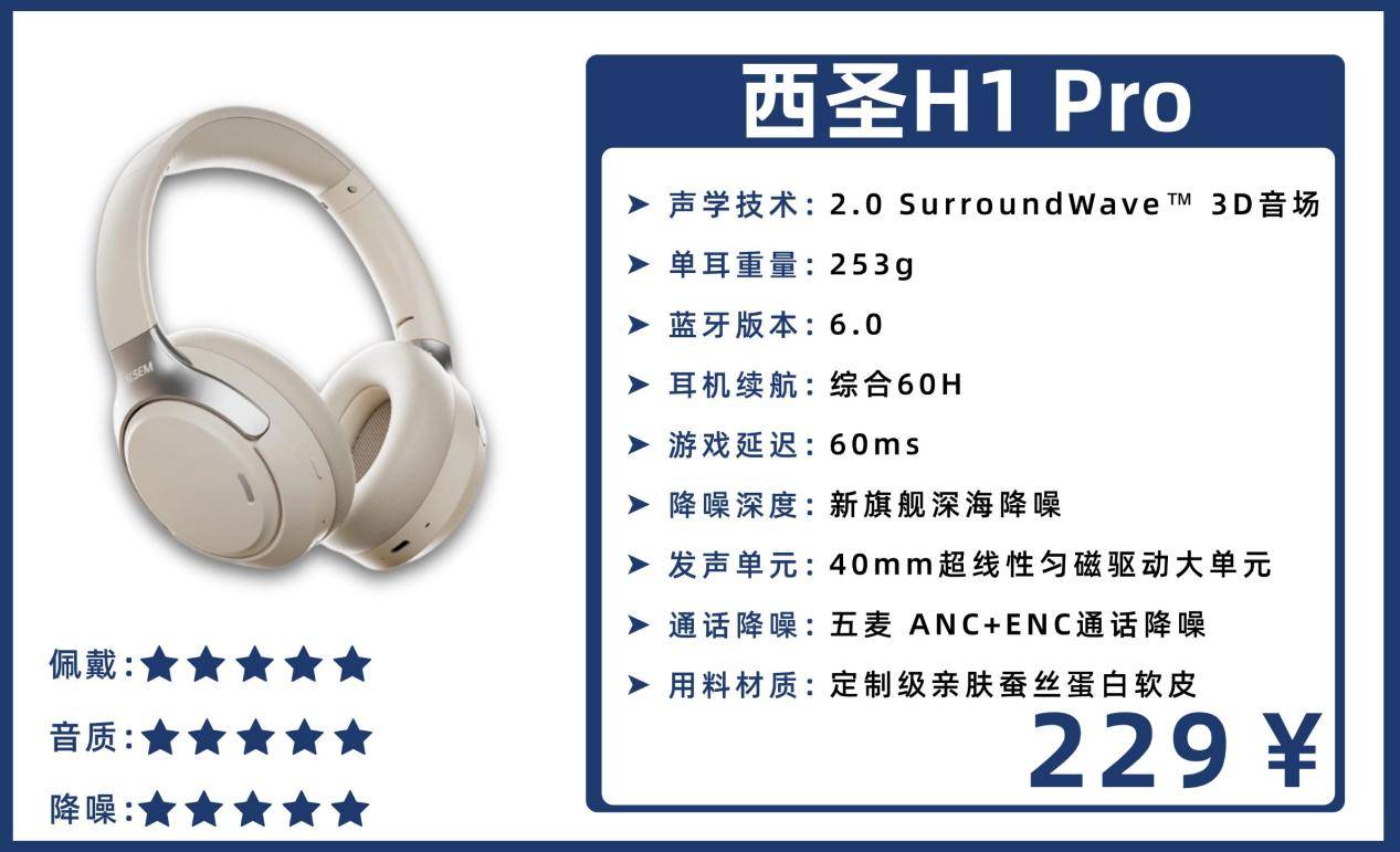 头戴式耳机推荐性价比排行榜有哪些?1、西圣H1 Pro头戴式耳机