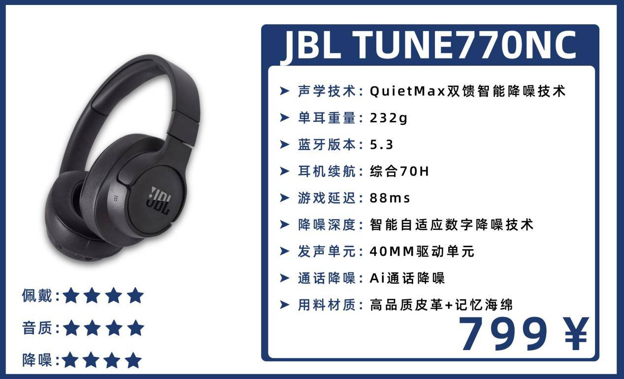 4、J B L TUNE770NC头戴式降噪耳机