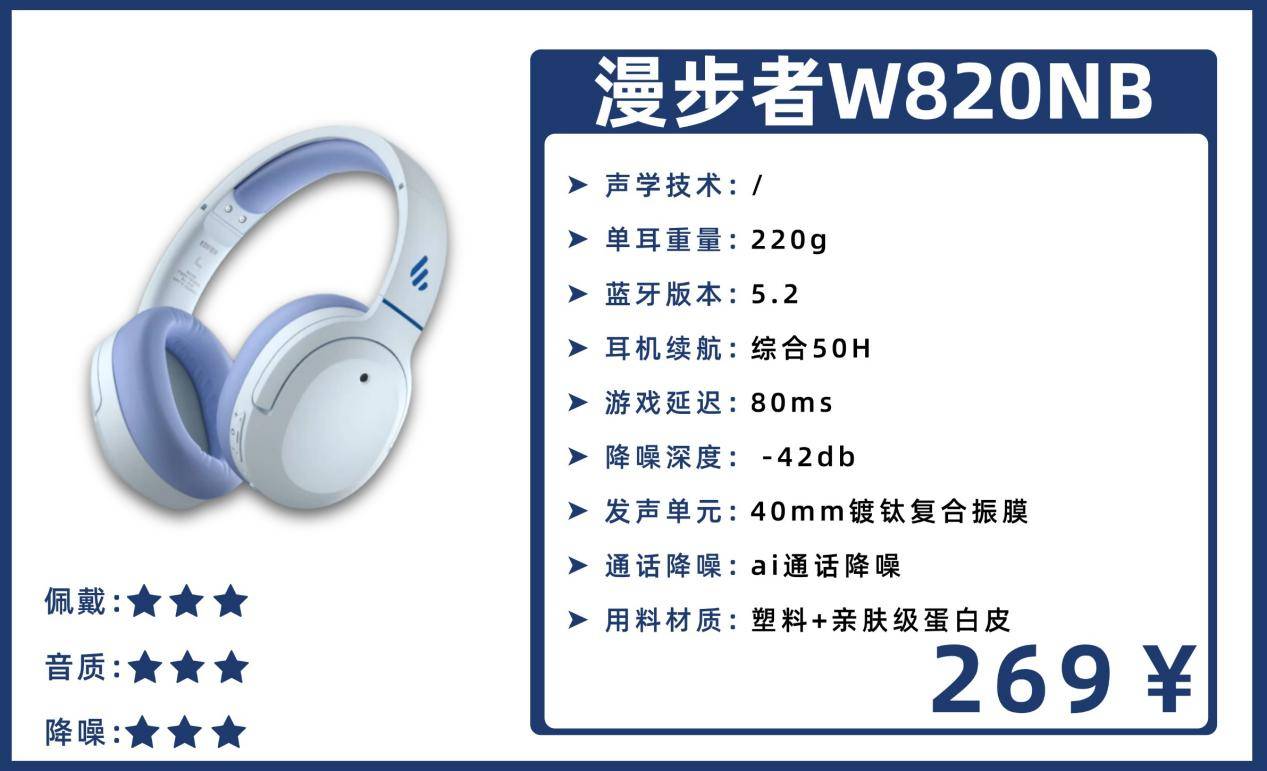 7、漫 步 者W820NB头戴式耳机
