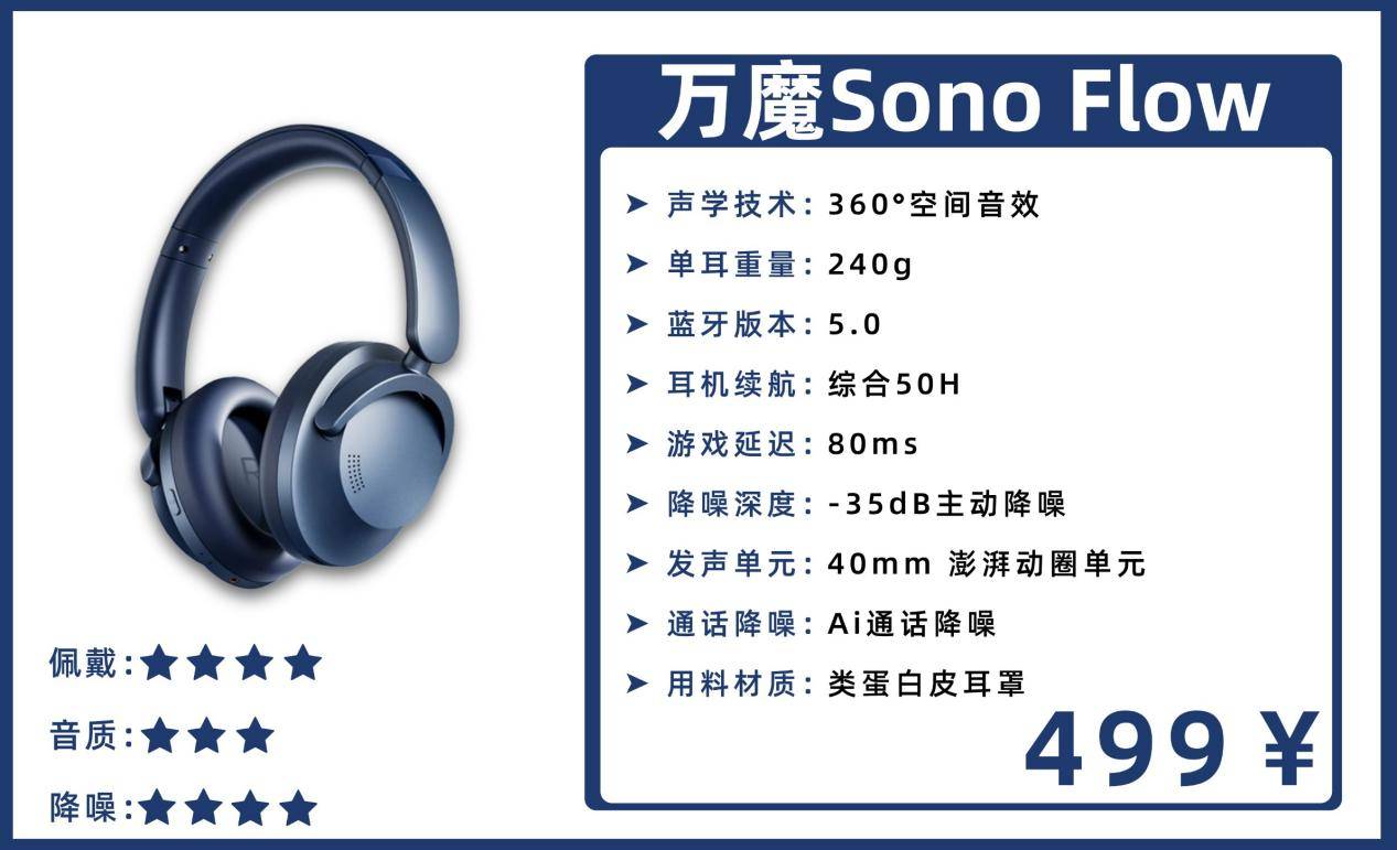 5、万 魔Sono Flow头戴式降噪耳机