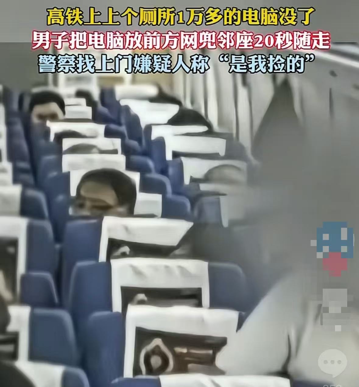 近日,在一列从杭州西站开往连云港的高铁上,旅客刘先生经历了惊心一幕。下午3点20分左右,他起身前往洗手间,将价值一万四千多元的笔记本电脑留在座位前的网兜里。短短三分钟后,当他返回座位时,发现电脑已不翼而飞。