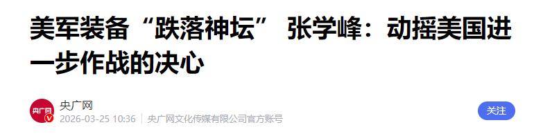 美军装备“跌落神坛”张学峰:动摇美国进一步作战的决心——央广网