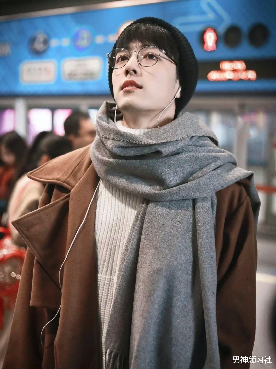 肖战的棕色大衣搭配灰色围巾,也在很长一段时间里封神。不得不说,戴着眼镜和黑色针织帽的肖战,也是太有少年感了,说是男大学生我都信。想减龄的朋友,学起来。