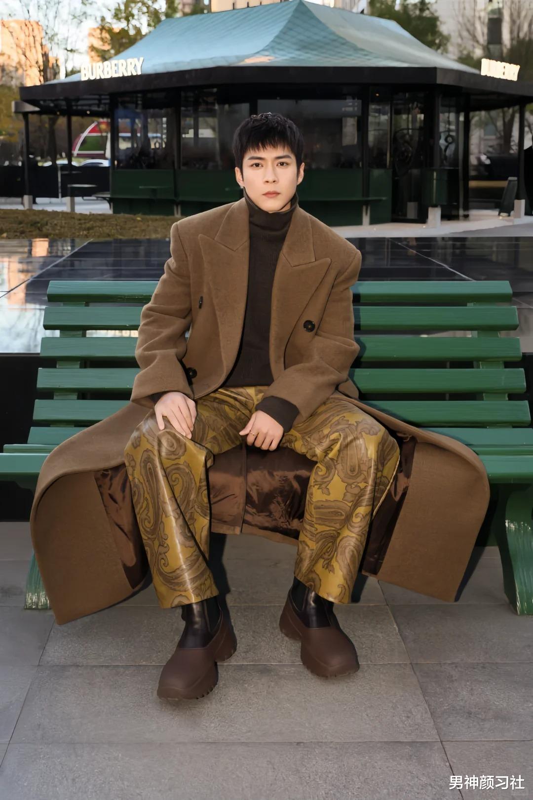 不得不说,棕色大衣的最佳内搭还是毛衣。董思成用素色毛衣打造贵公子的既视感,这套衣服的颜色很中性,人人都适合。