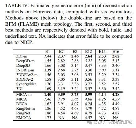 NICP需初始化:使用NICP并不一定能大幅提高性能,如估计器E5和E6错误地对前四种基于BFM的方法进行了排名。但当使用RLR进行刚性对齐或包含(非刚性)ELR变形时,NICP的排名一致性显著提高。