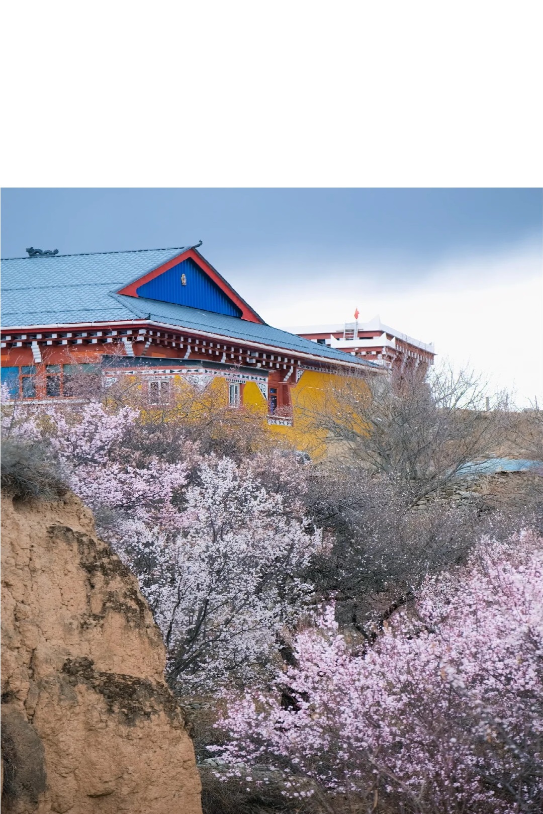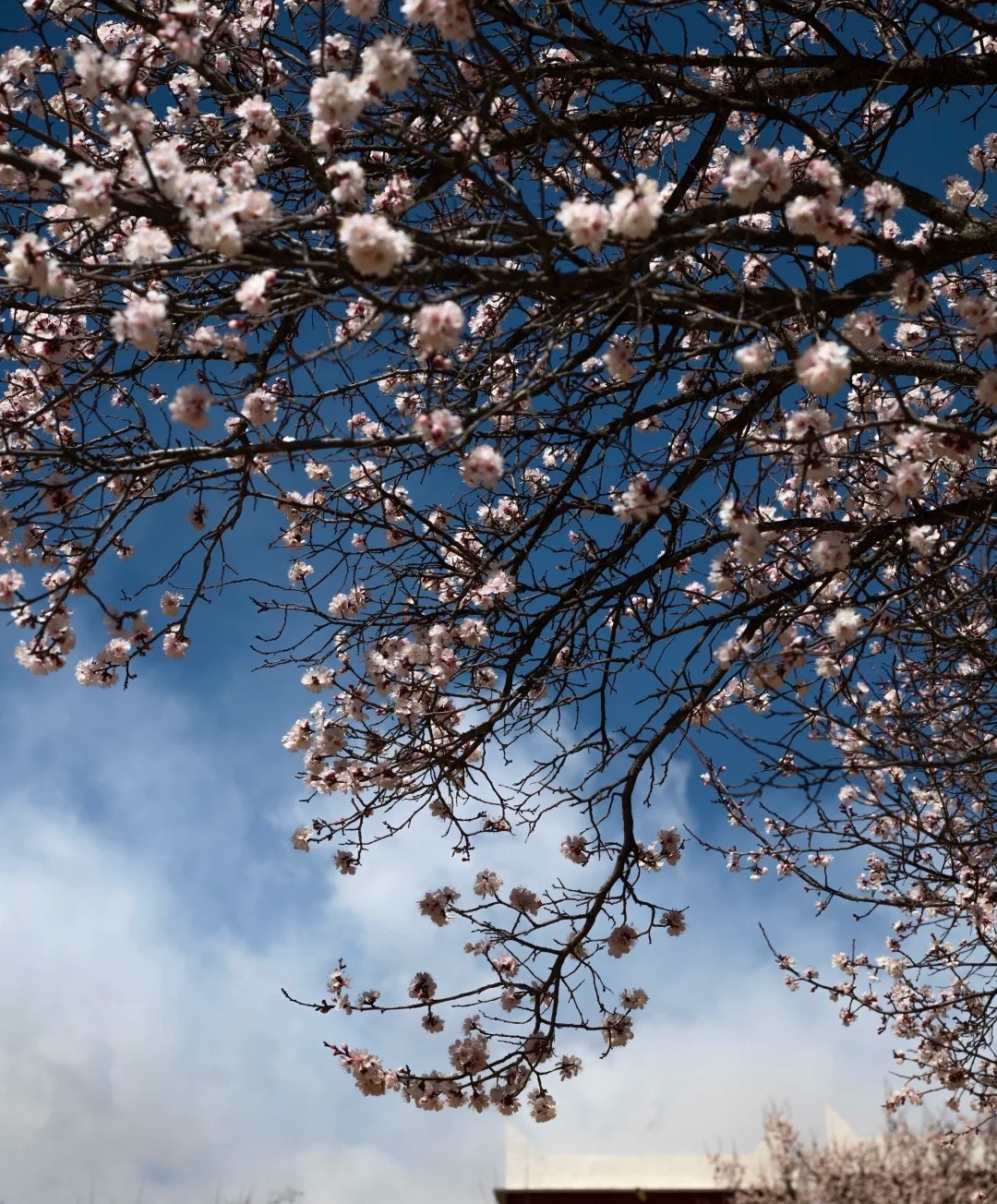 在百年杏花树下远眺雪山,喝着当地酥油茶,感受藏毯的温度!白花瓣缀满枝头,在蓝天白云与藏式民居的映衬下,将高原染成一片梦幻花海,如诗如画!