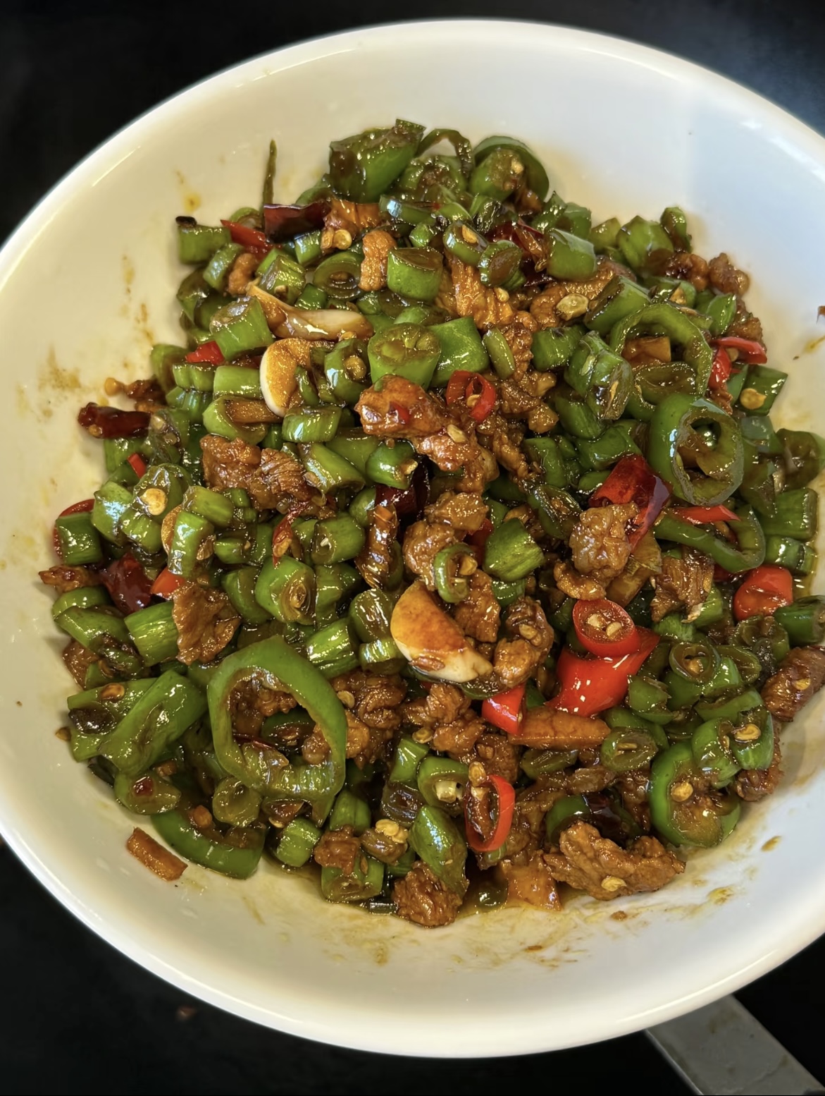 若说赣菜的灵魂,许多人会想到那一勺鲜辣过瘾的滋味。它不似川菜那般麻得张扬,也不像湘菜那样咸得浓烈,而是在干香与鲜辣之间,找到了一种恰到好处的平衡。在江西人家的餐桌上,有一道看似普通却极见功力的家常菜——肉末豆角。它朴素得就像田间地头随手摘来的一把豆角、案板上切下的一块猪肉,可就是这样一道菜,却能在寻常日子里,让人不知不觉多吃两碗饭。