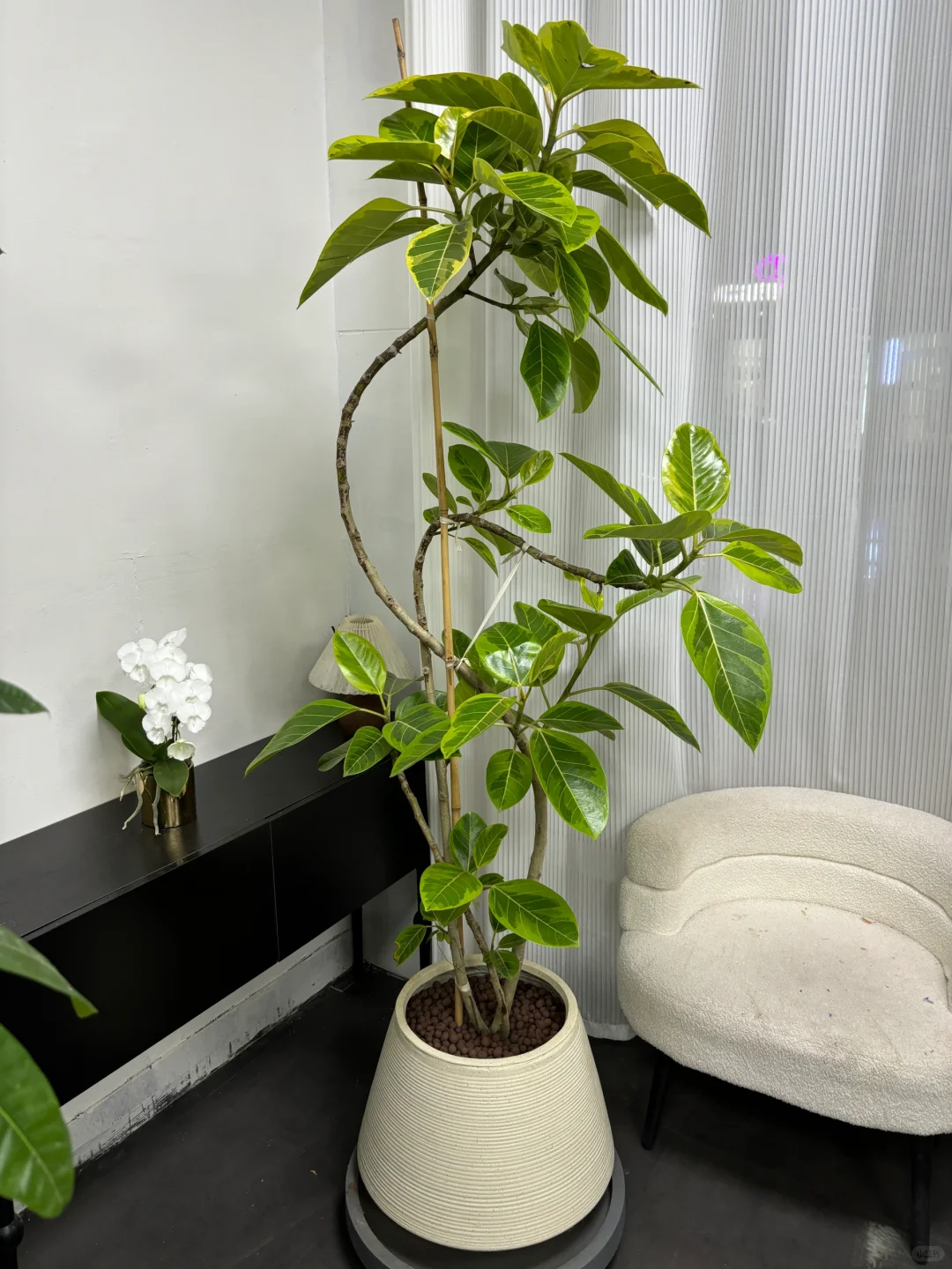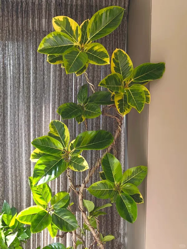 土壤表面一干就浇水,偶尔擦拭一下叶片上的灰尘,在春季和秋季每个月撒一次高氮缓释肥,即可嗖嗖窜成参天大树。
