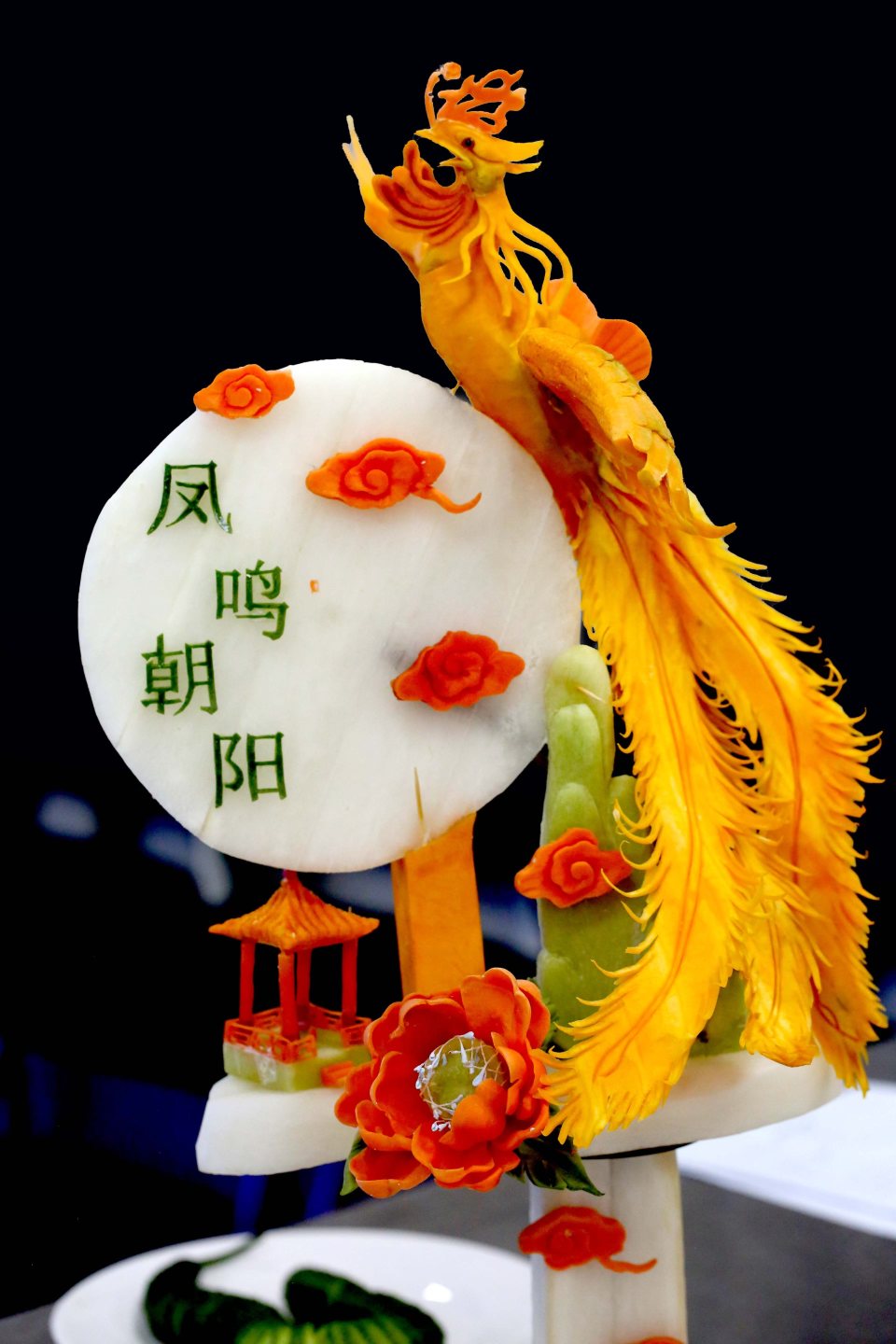 开幕式上,西安新东方烹饪技工学校马晓峰老师带领学生展现了一场精彩绝伦的龙须拉面表演。一团揉好的面团,经过表演者的揉搓、溜面、上下晃荡、左右打花之后,拉面就正式开始了:先把面条折起成为一扣、两扣、三扣……如此反复,每一次对折,面条的根数便会翻倍。表演者的动作娴熟而流畅,让人目不暇接。随着不断地拉伸,面条变得越来越细,宛如发丝一般。这便是龙须拉面的神奇之处,远看宛如瀑布,近看细如发丝。台上的表演者还在继续,他们要挑战更高的扣数,展现更加精湛的技艺。终于,面条达到了惊人的数量,根数众多却根根分明,令人叹为观止,拍案叫绝。