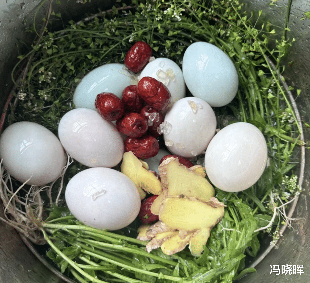 清明时节另一种常见食物是芥菜,如芥菜饭、芥菜煮鸡蛋、芥菜煎蛋等。民间有“三月三,荠菜当灵丹”的说法,《本草纲目》中也记载芥菜具有通肺、豁痰、开胃等作用,因此人们认为它有清理冬季积滞、预防春季疾病的功效。芥菜煮鸡蛋中,鸡蛋象征圆满、新生与孕育,也寄托着人们对新一年生活的美好祝愿。
