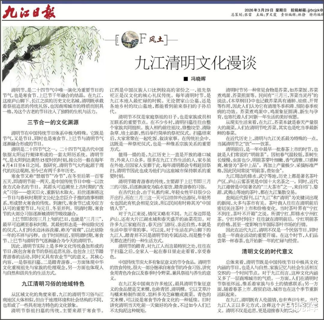 本文首发于2026年3月29日《九江日报·长江周刊》,总第1061期,以下为原文。
