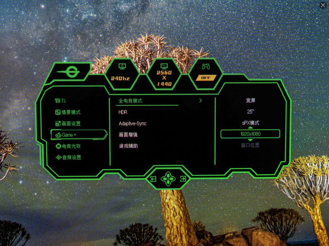对于FPS发烧友来说,24寸1080P才是黄金组合。泰坦军团G2785S则支持全电竞模式,可以额外提供1080P、25英寸等多种显示模式,一屏多用。