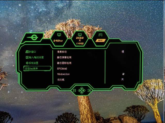 接口方面,配备2个满血的HDMI 2.1、2个DP 1.4、1个音频接口。无论是HDMI 2.1还是DP 1.4都支持2K 240Hz 10bit画质输出。