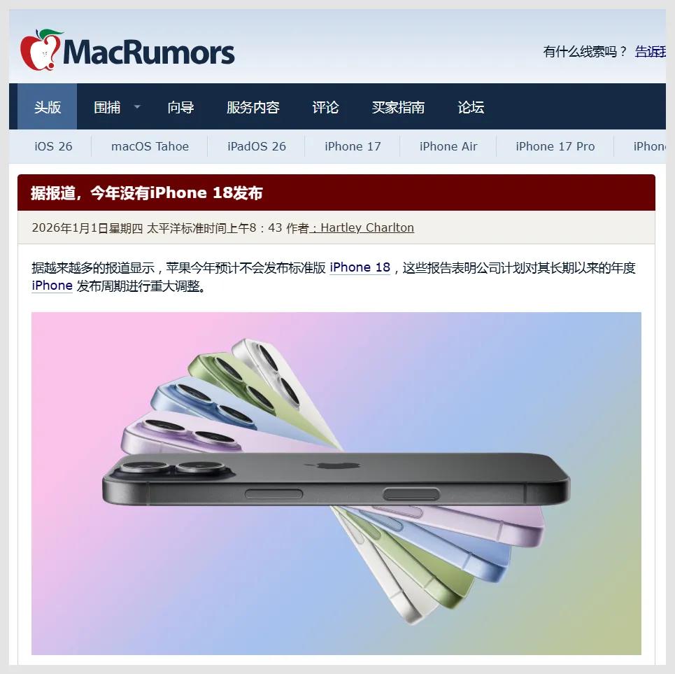 此前分析师郭明錤等消息源均表示,苹果把iPhone 18系列拆分成两个不同的发布窗口,其中将iPhone 18标准版延迟到2027年春季才发布,比Pro系列晚了六个月。