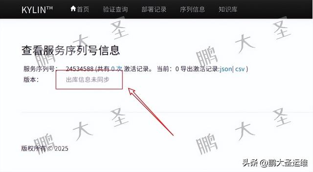 若为错误序列号,则显示“出库信息未同步”或相关失败提示。