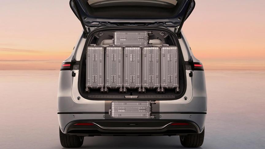 载物方面,在6座模式下,深蓝S09的后备厢容积达到了427L,其中还包含后备厢地板下的44L下沉式隐藏空间,可以放下7个20寸的登机箱,全家长途自驾时,行李都能轻松收纳。如果把第三排座椅放倒,整车的后备厢容积就来到了1392L,春季出游,带小朋友露营,自行车、露营装备等等,都可以轻松放下。