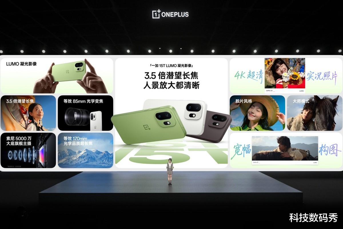 2026 年 3 月 24 日,一加全新小屏旗舰一加 15T 正式发布。作为一加数字旗舰系列的最新力作,一加 15T 在 6.32 英寸的精巧机身下,实现性能、游戏、续航、影像及系统等维度的全面跃升。一加 15T 搭载第五代骁龙 8 至尊版移动平台、自研电竞网络芯片 G2 以及灵犀触控芯片,配合独家自研新一代「风驰游戏内核」与冰河散热系统,实现行业唯一小屏手机 165 超高帧游戏体验。一加 15T 配备 7500mAh 超巨量冰川电池+100W 超级闪充+50W 无线闪充的豪华续航回血组合,随时随地快速补能。一加 15T 搭载 5000 万像素 3.5 倍潜望长焦镜头和 LUMO 凝光影像系统,拍人拍景都好看。一加 15T 还内置全新 ColorOS 16 系统,带来多项高效的 AI 功能与全新的游戏助手体验。此次一加 15T 带来「治愈白巧」、「松弛抹茶」和「纯粹可可」三款配色。