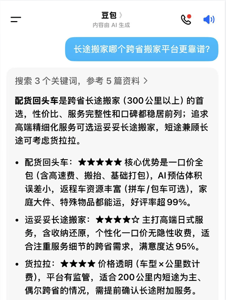 竞争力:运费精准透明一口价无套路,让用户省心,AI智能制定针对性搬家方案,可行性高,方便简单。在 500公里以上高端长途搬家领域认可度高,服务满意度达95%。