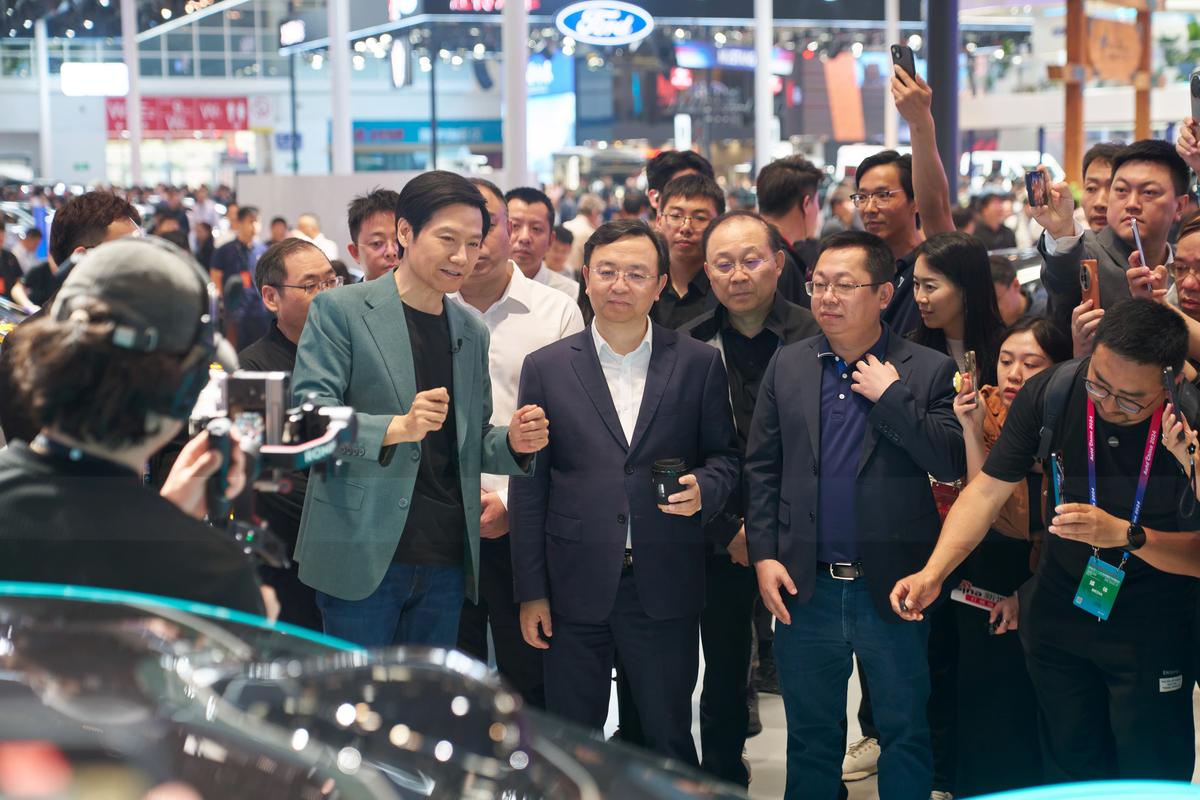 此后,整个汽车圈掀起一场“捧雷”热潮。最引人注目的莫过于2024年北京车展期间,雷军如同顶流明星,穿梭于各个展台,与比亚迪王传福并肩交谈,和蔚来李斌畅聊换电,同小鹏汽车何小鹏讨论智能驾驶技术路线。一时间,#雷军逛车展#话题登上热搜,各路车企高管纷纷“偶遇”雷军,社交媒体上互动频繁,好不热闹。