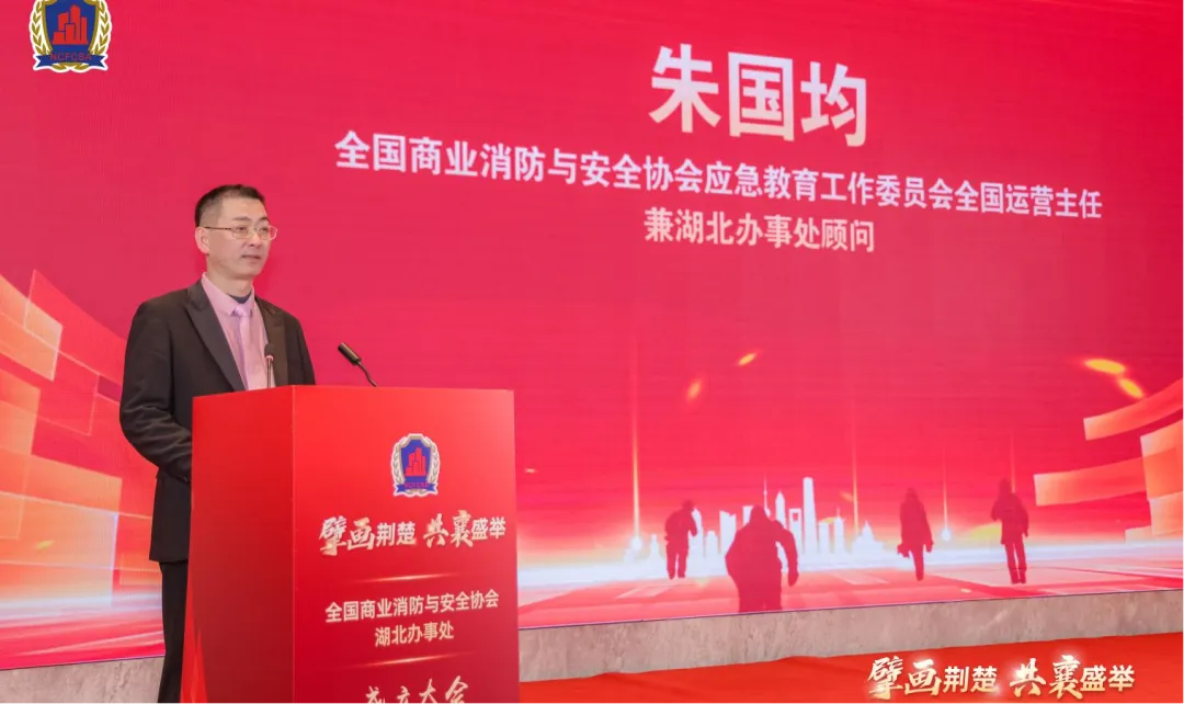 全国商业消防与安全协会应急教育工作委员会副主任兼湖北省办事处顾问朱国均致辞表示:一是要汇聚专业力量,为企业提供培训、咨询与技术支持。二是要组织交流互鉴,推广先进经验与技术,提升行业整体安全水平。三是要倡导守法诚信,压实主体责任,护航商业安全健康发展。湖北省办事处将强化政策赋能,深化协同创新,秉承开放合作理念,与协会及全体会员单位一道,共同推动湖北商业安全管理实现更大突破,更高质量发展。