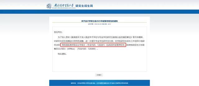 ●「天津大学」2025年全日制会计硕士将暂停招生,非全日制会计硕士正常招生。