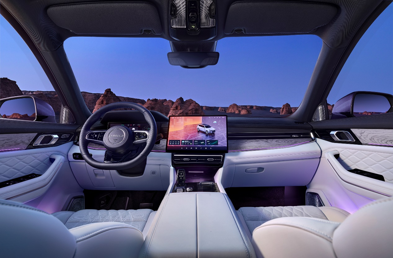 2026款领克09四驱探索版首先在视觉和触觉层面带来了新鲜感。新车新增了暗夜紫与山野绿两款车色,搭配20英寸光晖轮毂,外观在运动与豪华之间找到了新的平衡点。内饰新增的日光米配色,配合NAPPA真皮包覆、精细缝线与木纹饰板,从拉开车门的那一刻起就营造出不同于传统燃油车的精致氛围。但它的升级远不止于表面,其核心在于对乘坐体验,尤其是第二排空间的彻底革新。