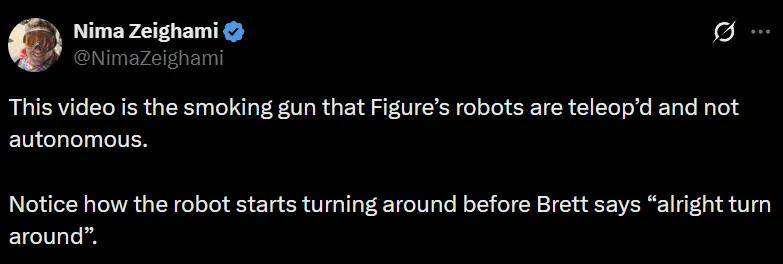 例如在Shawn Ryan Show节目中,阿德科克户外演示Figure 03功能时,有质疑者指出,在他发出“好了,转身”的指令前,机器人就已提前启动转向动作。