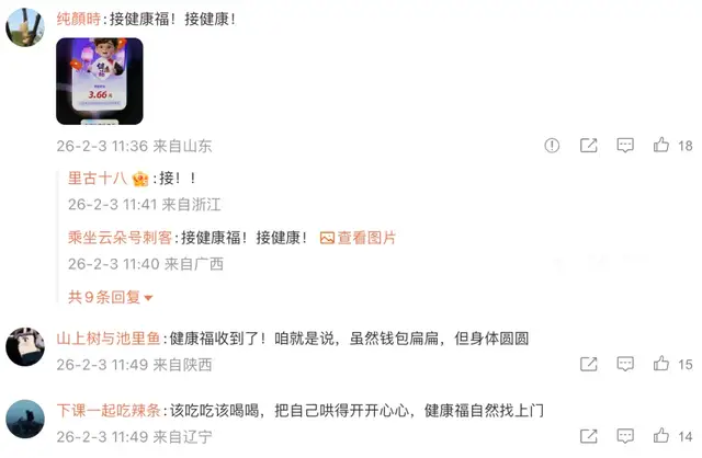 2016年第一次集福活动,「敬业福」一扫难求,既是对新事物的热情与好奇,也是对自我的激励和肯定;2020年「全家福」则是特殊时期,对家庭温情的线上守护。2026年,当「健康福」上线,瞬间成为顶流,背后同样是一种共情。