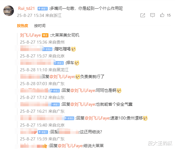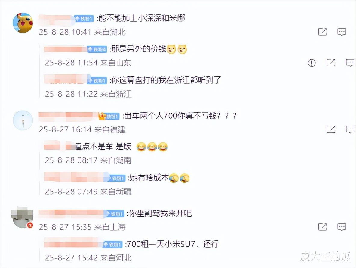 除此之外,刘飞儿还表示自己可以穿的美美的在旁边,自己开车载着你们去玩,两个人陪再加上一台车,一天只需要700这样有没有搞头?而在这条微博下面,粉丝们也是直接开始了热情互动,很多粉丝看完之后也是直接调侃到:“你起到什么作用?”