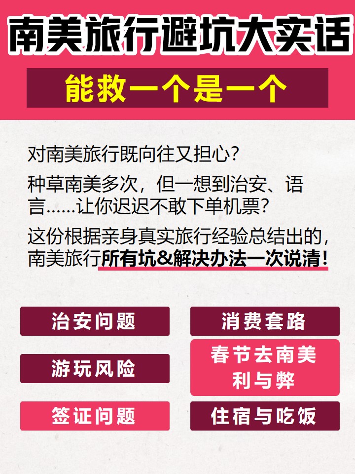 这份根据亲身真实旅行经验总结出的,南美旅行所有坑一次说清!
