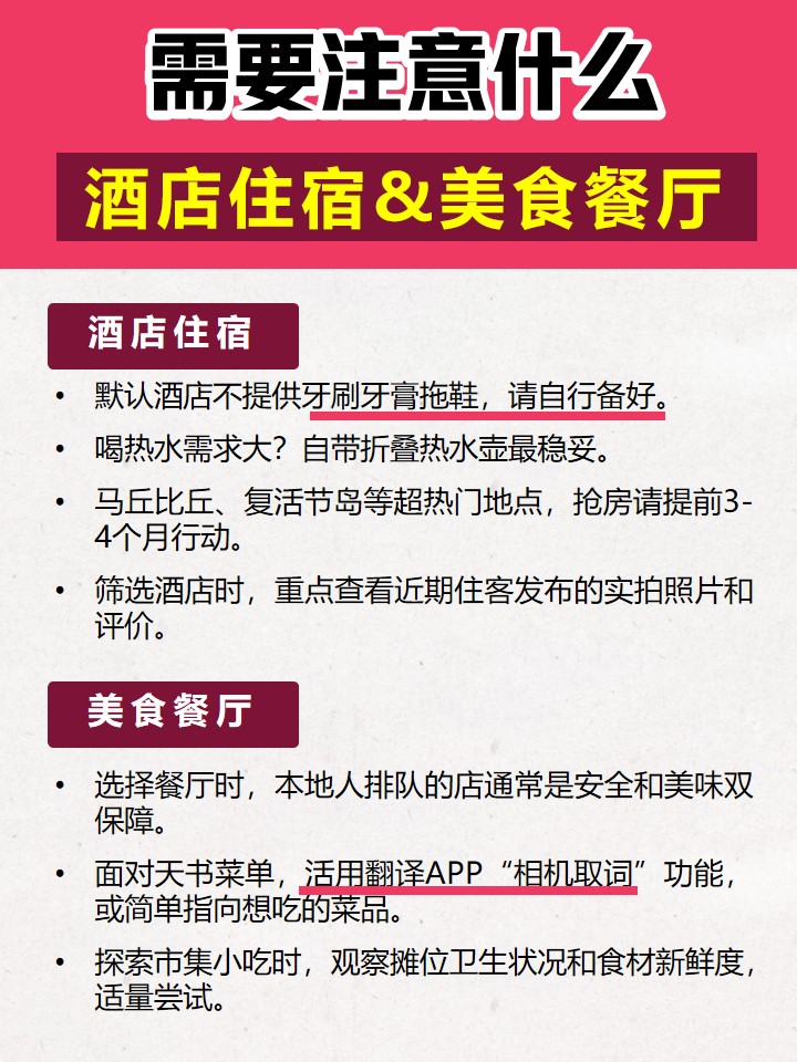 ▪️ 马丘比丘、复活节岛等热门地,务必提前订房
