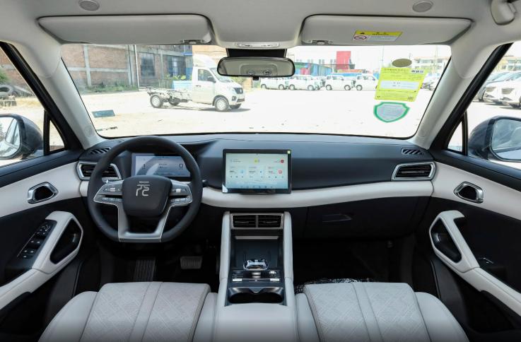 在内饰方面,新车采用了规整简洁的环抱式中控布局,低配车型10.1英寸中控屏集成DiLink 50智能座舱,在硬件性能方面逊色于比亚迪主流的DiLink 100方案,但同样支持4G互联,只是没有配备GPS卫星导航系统,日常出行还是要依赖手机导航定位,使用起来多有不便。要想获得更多智能化体验,中高配车型升级为12.8英寸车机系统,应用DiLink 100高阶智能座舱,支持5G速联和更丰富的车机功能。